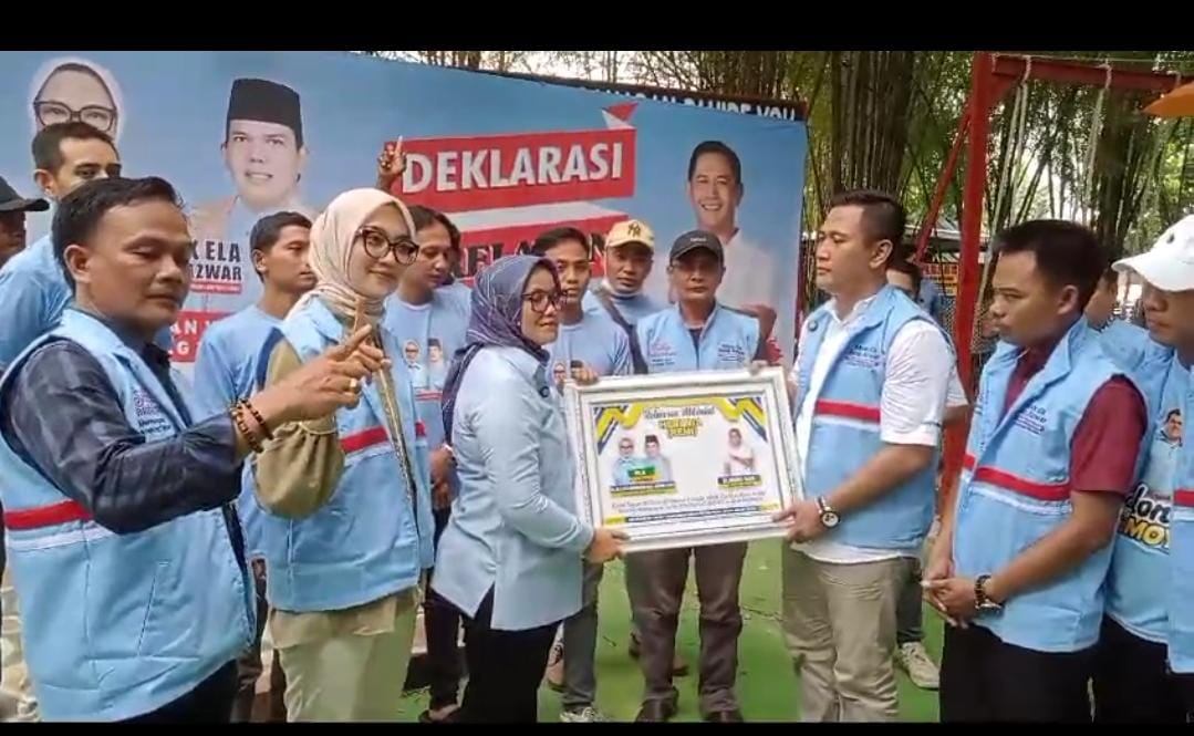 Ratusan Relawan Milenial Heri Kusno NJA turut mendeklarasikan mendukung mereka kepada pasangan Ela-Azwar. Deklarasi digelar di Pondok Daharan Pakde Yok, Jalan Raflesia, Mulyojati, Metro, Lampung, Sabtu (28/9/2024).